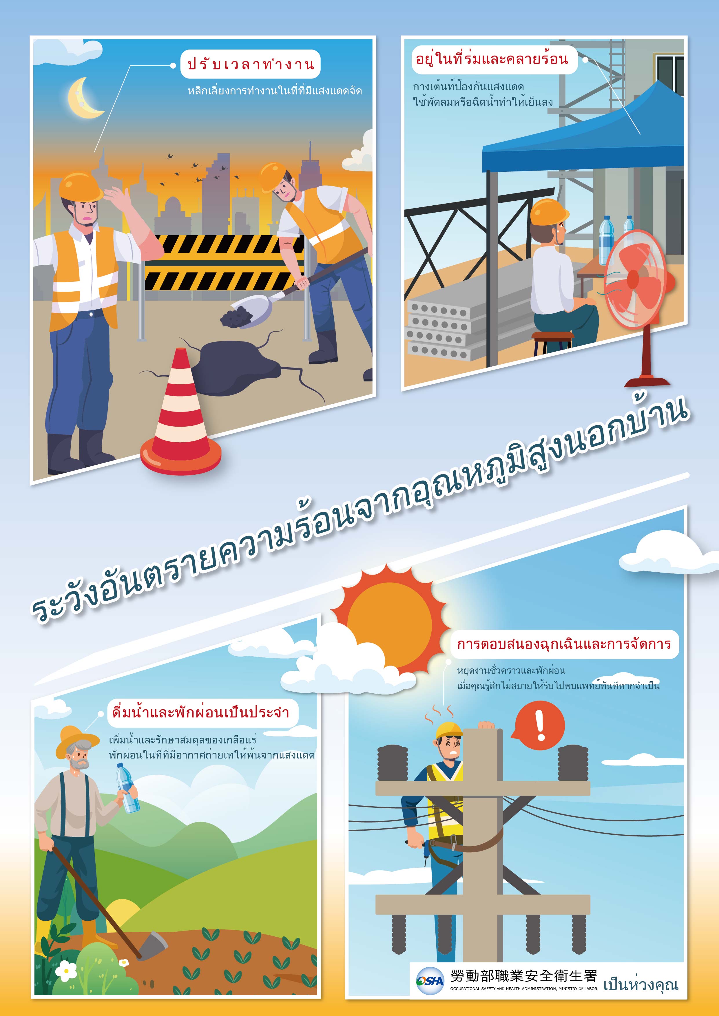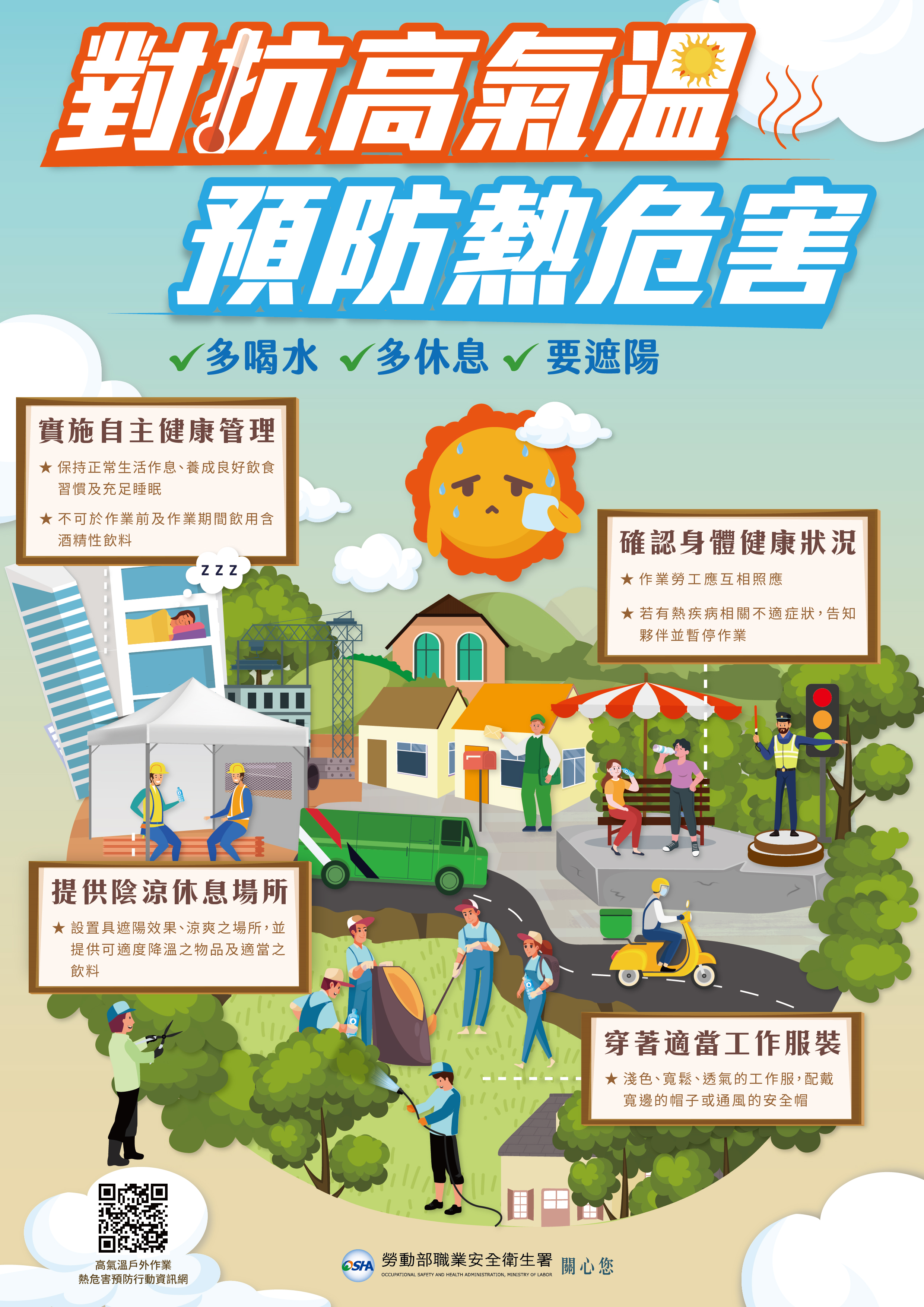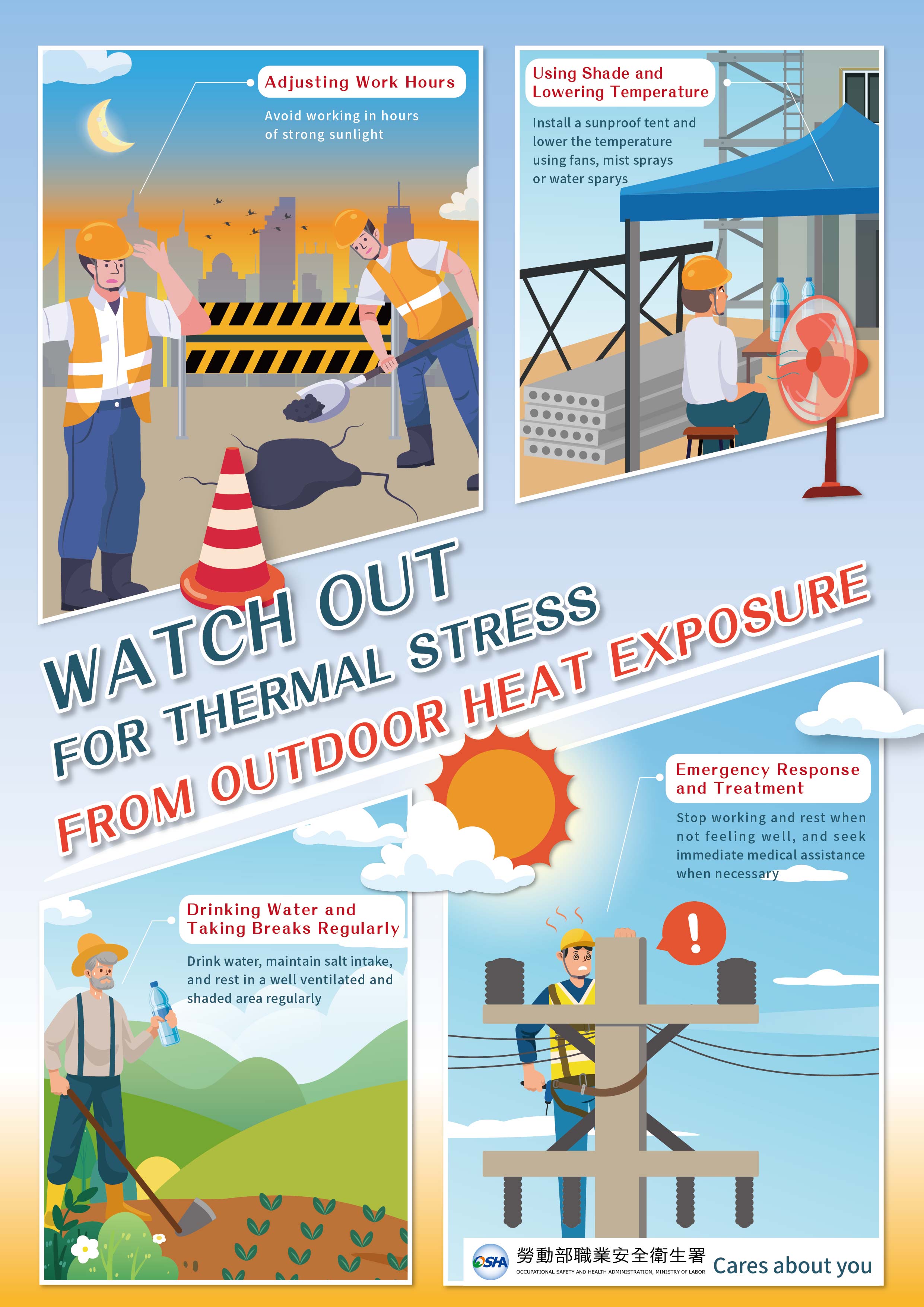 - 勞動部職業安全衛生署委託中國醫藥大學於112年5月23日至6月12日分區辦理「112年度高氣溫戶外作業熱危害預防說明會」。