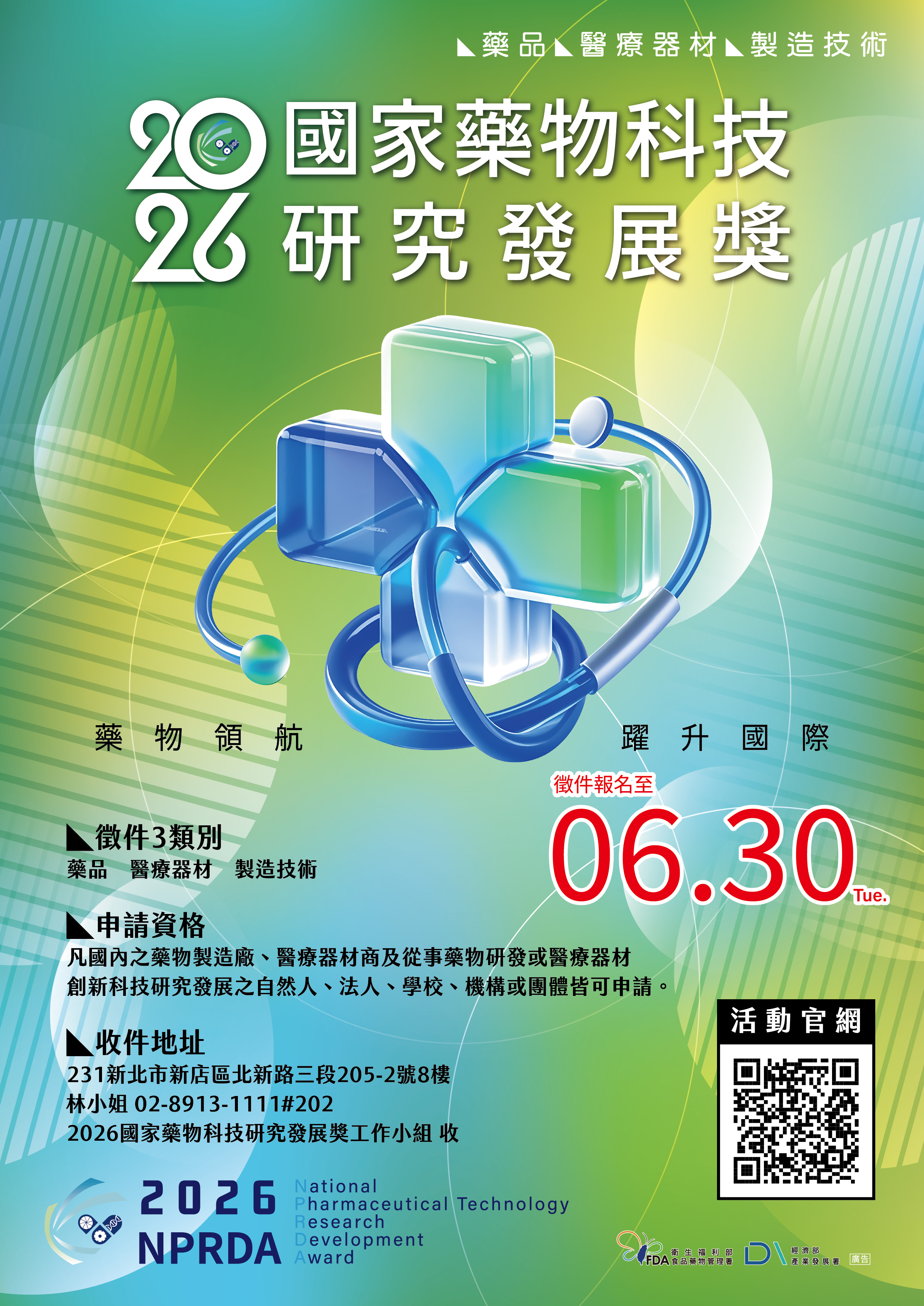 二、「國家藥物科技研究發展獎」(National Pharmaceutical Technology & Research Development Award, NPRDA)係由衛生福利部與經濟部共同主辦之國家級藥物科技研發獎項,旨在獎勵致力於新藥物及相關產製技術研發且成效卓越之團體或個人,以提升我國藥物之製造工業水準及臨床試驗品質,自設立以來,已頒發金、銀、銅質獎項累計超過270件。